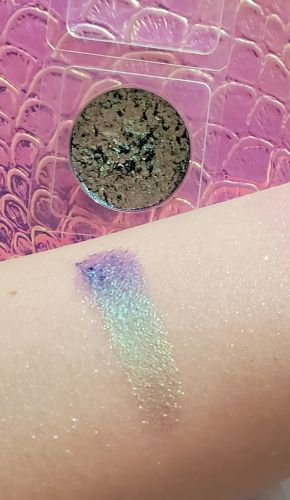 - 5/5Opinion confirmed by purchaseThis is the best formula version of this pigment with a purple base and a green flip on the market. The formula is very intense and sparkly. In the eye macro photo, the shade is applied in the center eyelid on top of other shades.2022-06-18
