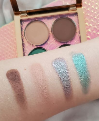 A palette of four pressed eyeshadows: two mattes and two shimmers.